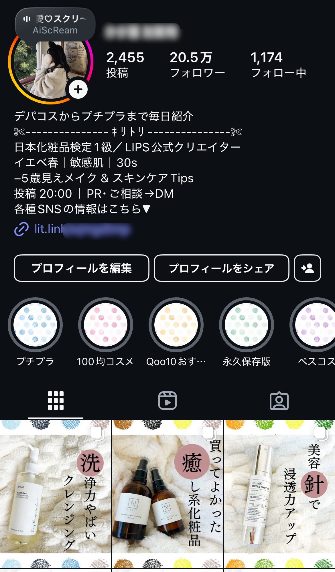 【Instagram】【フォロワー20.5万人】フォロワー数右肩上がり現在も運用中のPR依頼の固定報酬を収益モデルとした女性向け美容系アカウント!